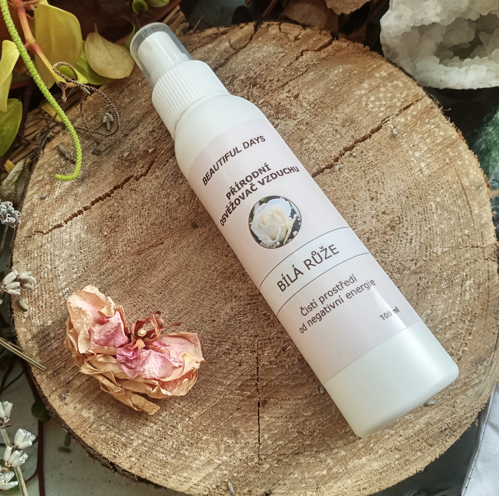 Přírodní osvěžovač vzduchu Bílá růže, 100 ml. Čistí prostředí od negativní energie. Více informací